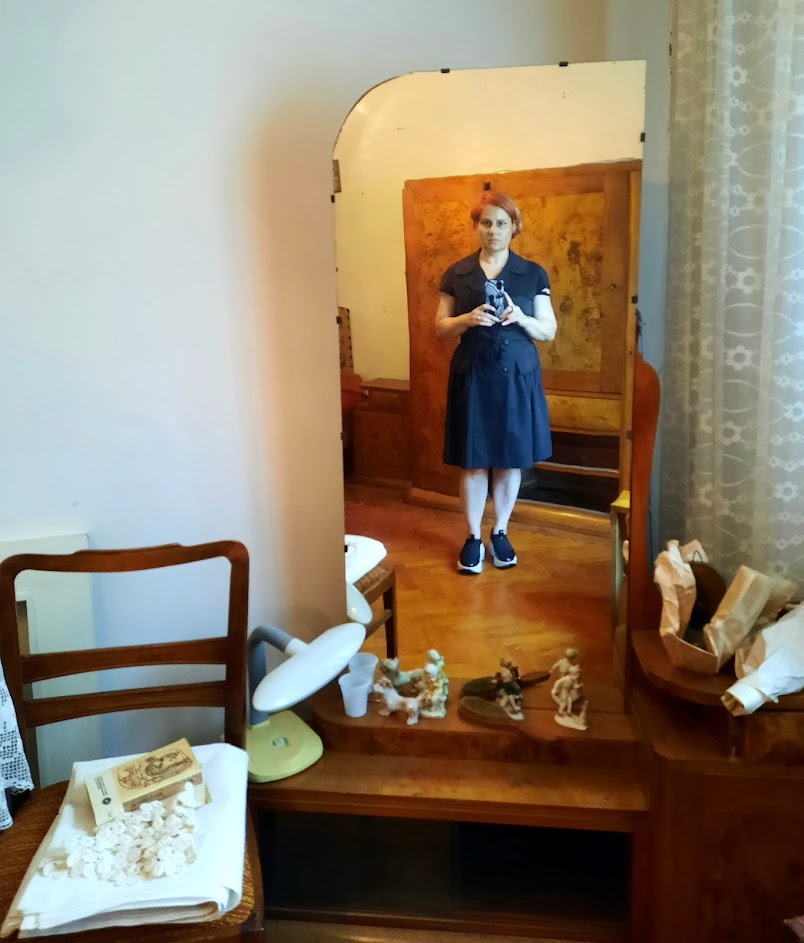 Dacă tot eram în orașul în care au locuit bunicii paterni, probabil ultima oară în apartamentul lor, nu am rezistat imboldului natural de a face ceva – m-am întors cu două genți cu cărți. Nu știu ce o să fac cu ele încă, dar eram ca-n cofetăria arăbească, aș fi luat din toate. Puneam mâna pe ele și instant mă transportau în anii care nu începeau cu 2000. Noi, patru nepoți citind în camera pe care o împărțeam în vacanța de vară cât se odihnea bunica. Eu citind Sandra Brown în camera bună, cea în care mi-am făcut poză, cred că o singură vară am stat acolo fix 3 săptămâni (venisem cu avionul). Totul pe repede înainte, tablouri care lasă urme decolorate pe pereți, dezgolirea la propriu a unei case în care s-a locuit în ultimii 40 de ani. Și trebuie să faci totul pe repede-înainte, avem cazare în alt oraș. Trebuie să pipăi cărți și lucruri sub ochii altor oameni, să-i rog să mă lase să fac un selfie la oglindă. Poate că mobila aia, faimoasa mobilă din lemn de tisă va ajunge la București înainte să se vândă apartamentul… nu ne grăbim!… dar de ce eu simt că ne grăbim? Aș putea să stau să fumez o țigară în balconul de la parter care odinioară era casa unor begonii superbe; să mă aplec peste geam la straturile de roșii cultivate de bunici în grădina blocului…. dar eu nu știu să stau. Cărțile sunt în portbagaj încă, nu am nici bibliotecă… unele probabil vor ajunge la anticariat pentru că sunt în limba maghiară.