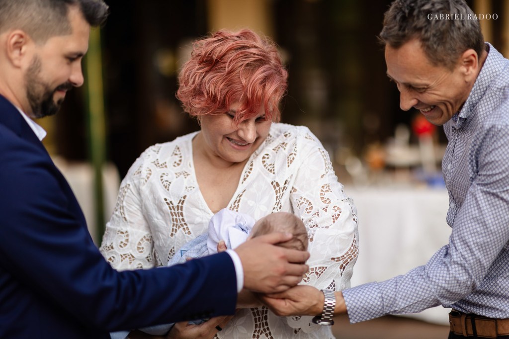 Vărul meu Radu m-a invitat la botezul primului său născut și mi-a mărturisit că este unul din cititorii din umbră: uită să dea o reacție că a citit. M-a sunat și a doua zi după botez să-mi mulțumească pentru participare și să declare că a fost emoționant. Răducule, nici nu ai idee cât. având în vedere că eu am devenit spre vârsta adultă ca nebuna din The Millers, trebuie să pun și poza în care mi-am ținut promisiunea făcută către mine: I’M GONNA HOLD THAT BABY!!! Care s-a dovedit că mi-e foarte frică să mai țin în brațe copiii altor oameni, mi-e frică să nu fiu prea parfumată, prea departe de orice-i e familiar copilului. Ce facem cu scrisul ăsta: punem aicișa tot ce nu vrem să uităm, tot ce nu s-a scris deja în cărți, tot ce nu riscă să facă pe cineva să se simtă inconfortabil la vârsta adultă. Botezul lui Matei a fost ca atunci când te urci în învârtitoare, îți iei avânt, apoi de ții cu ambele mâini și dai capul pe spate. Lași lumea să se desfășoare sub ochii tăi și când te oprești nimic nu mai e la fel… dar e altfel. La masa noastră s-a perindat tineretul, cei la care urmează să mergem la nuntă cât de curând. Mi-am adus aminte cu ocazia asta cât de puțin s-a schimbat vărul meu mai mic, era atât de dulce și lipicios când eu aveam 17 ani și o tonă de treabă în curte. Cum nu aveam telefoane mobile în 1998 și am mers la farmacia locală să sun la părinții lui și să întreb ce pot să-i dau pentru un pic de febră în miez de luna lui Cuptor. I-am dat siropul, s-a culcușit pe mine după ce m-a cuprins cu brațele lui firave și a adormit imediat. La vremea respectivă simțeam că sunt într-o capcană a afecțiunii care mă ținea să nu prepar masa de prânz. Eram inconștientă clar. Ne-am adus amândoi aminte de checurile pe care i le făceam în weekend pentru verile în care nu mai aveau nevoie de mine.