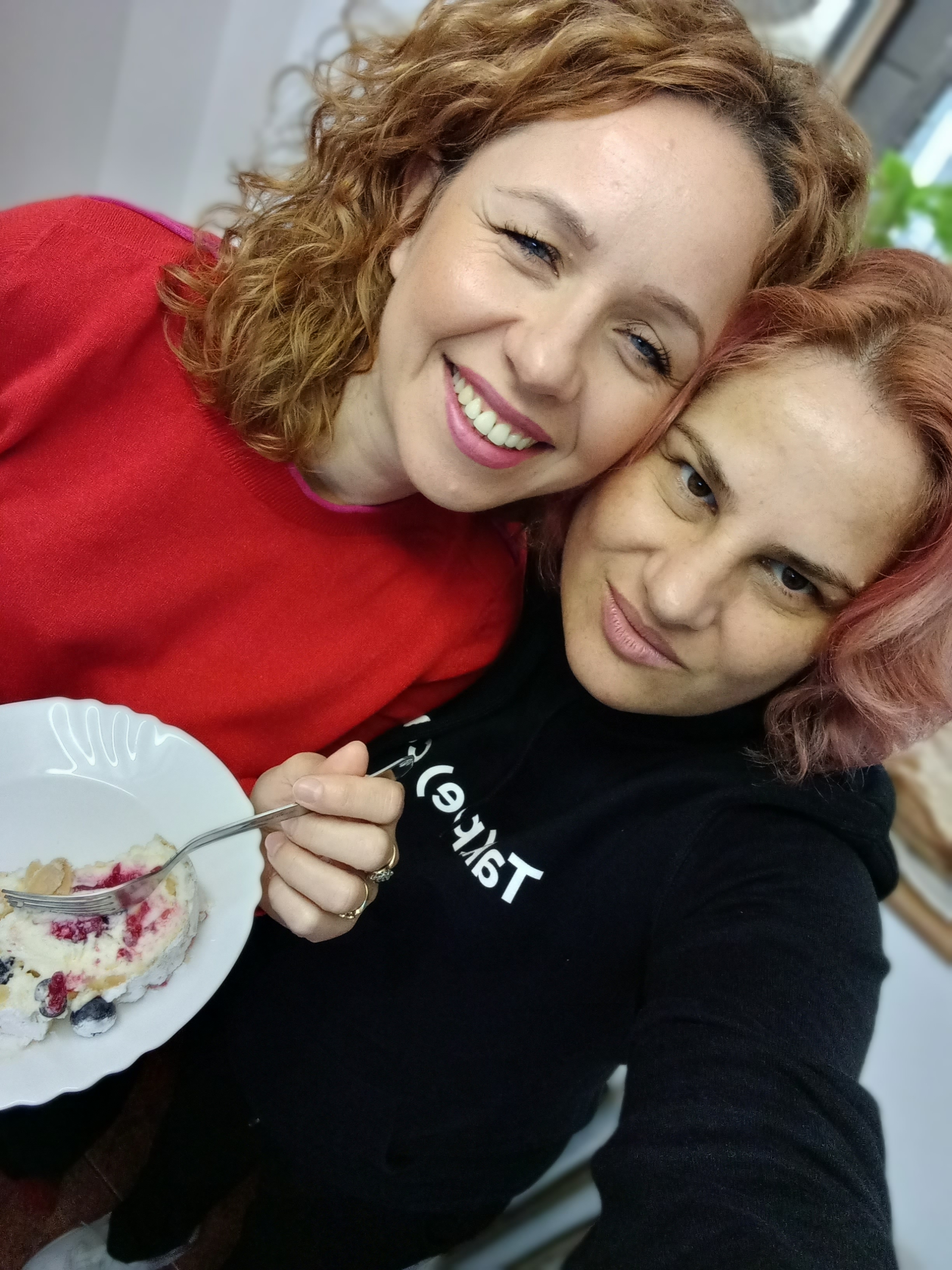 Am poză cu Irinuca și o prăjitură cu vișine de mai demult.