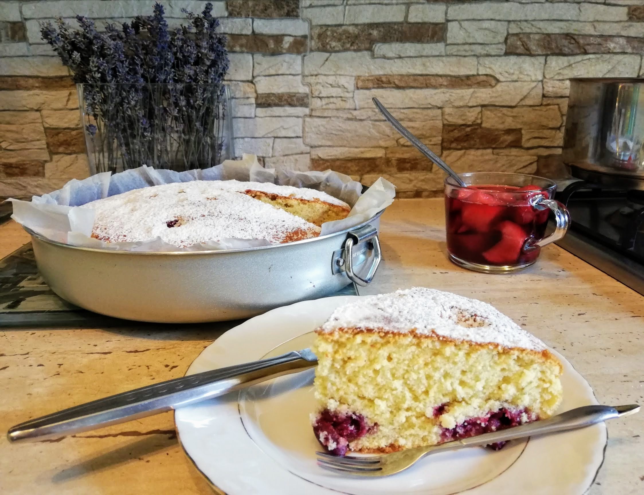 Am poză cu Irinuca și o prăjitură cu vișine de mai demult.