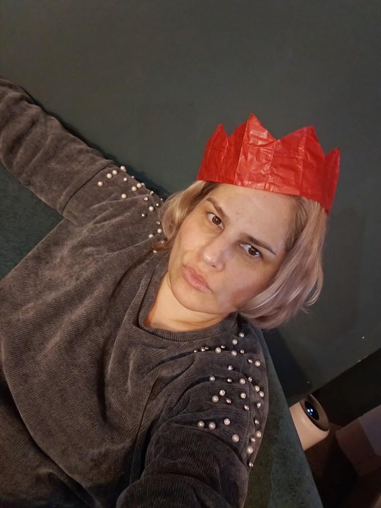 Și o poză pe fundal de sobă (da, e un perete de sobă) din prima zi a anului (sau din ultima). We can always be royal, se știe! Nu am mai dat cu filtru, sunt anemică, aia e.