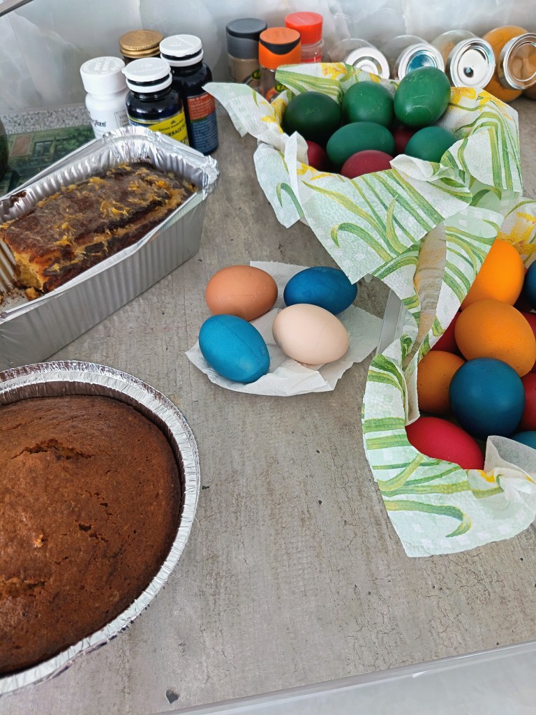 M-am trezit în dimineața asta cu gândul să termin postarea, să fierb ouăle și să le vopsesc, să fac glazura pentru checurile cu ricotta și doar să asamblez tortul… adică ce mare lucru, e abia ora 11 și azi voiam să fie mai pe chill. 🙂 Slavă Domnului că au ieșit toate bine, aștept să iasă responsabilul cu nivelul de enzime hepatice din dormitor și să se plângă că pute a ouă fierte și a oțet în toată casa. Abia aștept să fiu recunoscătoare că suntem bine încă un an, că tata o să-mi critice unul dintre aceste dish-uri, că nepotul care e la o vârstă când arată ca our Lord and saviour se strâmbă că nu avem dulciuri suficiente și că nu știu să gătesc, că celălalt nepot constată că nu vopsesc niciodată suficiente ouă și că fiul meu sigur va fi nemâncat la finalul zilei. O să fie o zi plină de recunoștință pentru oameni imperfecți pe care îi iubim mult și care se vor alinia perfect. Așa arăta când nu era încă totul gata, am reciclat ambalajul de baby spanac într-un recipient improvizat de ouă, să nu simt că am dat în mama pământ cu formele de aluminiu. Pe fundal se văd suplimentele care mă ajută să reduc la tăcere vocile care tind să devină cam deranjante, mai ales în preajma sărbătorilor. Rețeta de carrot cake e de pe blogul ciocolată și vanilie, prăjitura cu ricotta e tot din online, doar i-am făcut o glazură cu zeamă de lămâie, zahăr pudră și coajă de lămâie. Secretul, dacă era nevoie să fie un secret, este că am primit 30 de ouă de la mama soacră, restul cumpărăturilor le-am făcut pe sezamo de luni și tot atunci am spălat legumele și verdețurile de ciorbă, am dat pe răzătoare coaja de la portocale și lămâi și le-am pus frigider cu zahăr. Dacă gătești de mică, la ocazii doar te joci. 😉 Și să nu uităm de gospodina din anii ’90, surprinsă mereu cum se distra după zile pline de muncă… pardon, de satisfacții.